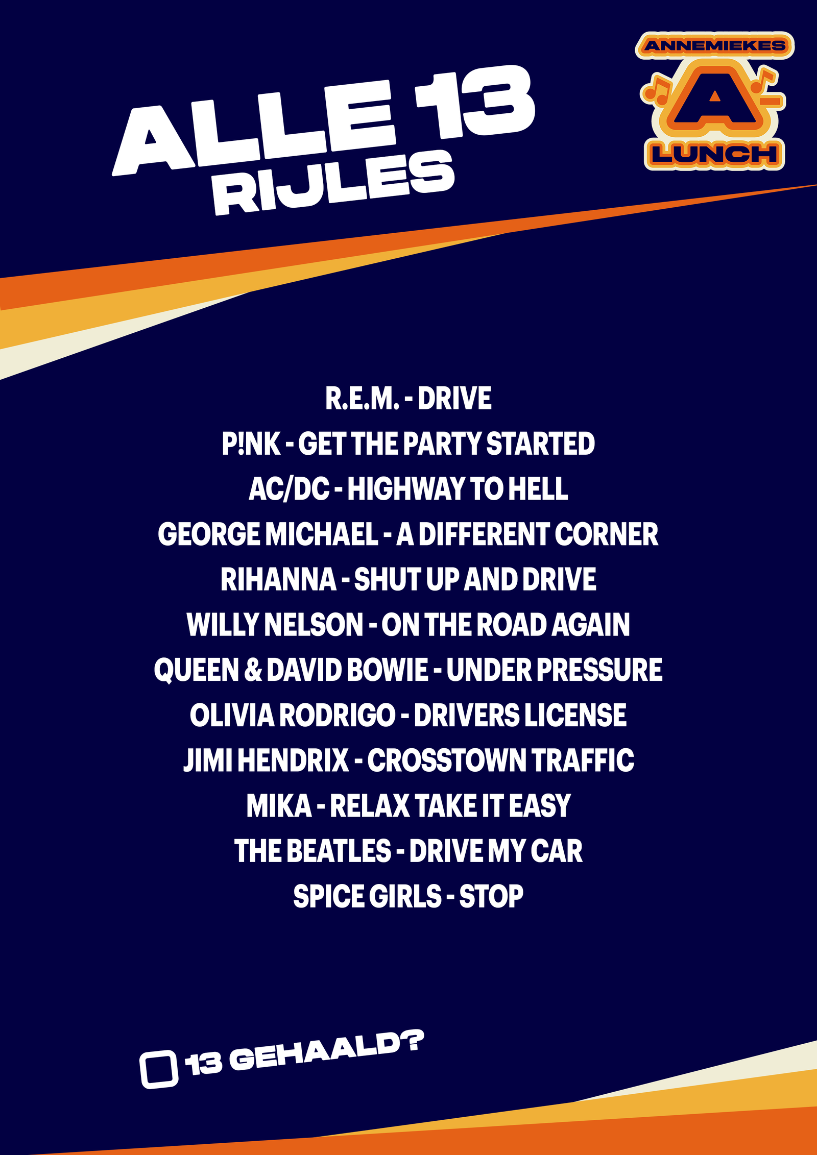 R.E.M., Under Pressure, Drivers License... Dit was Alle 13: Rijles