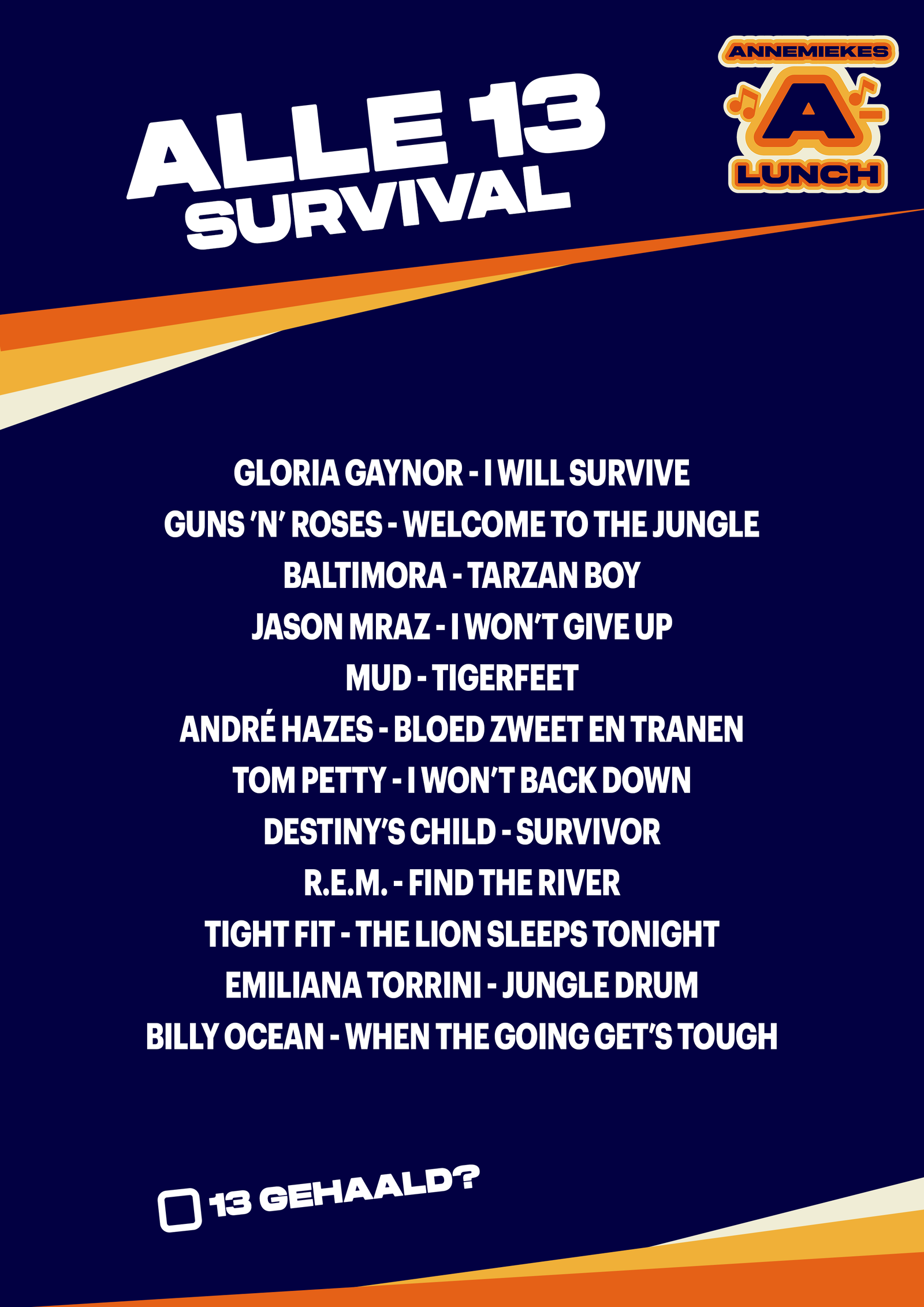 I Will Survive, Tarzan Boy, Tigerfeet... Dit was Alle 13: Survival