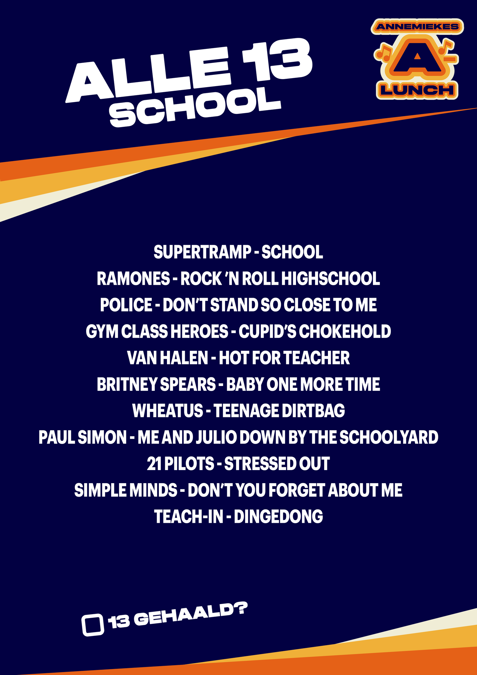 Vandaag zijn weer enorm veel Alle 13 suggesties binnengekomen. Luisteraar Marco (met vele anderen) komt met een hele toepasselijke. Alle 13: School!