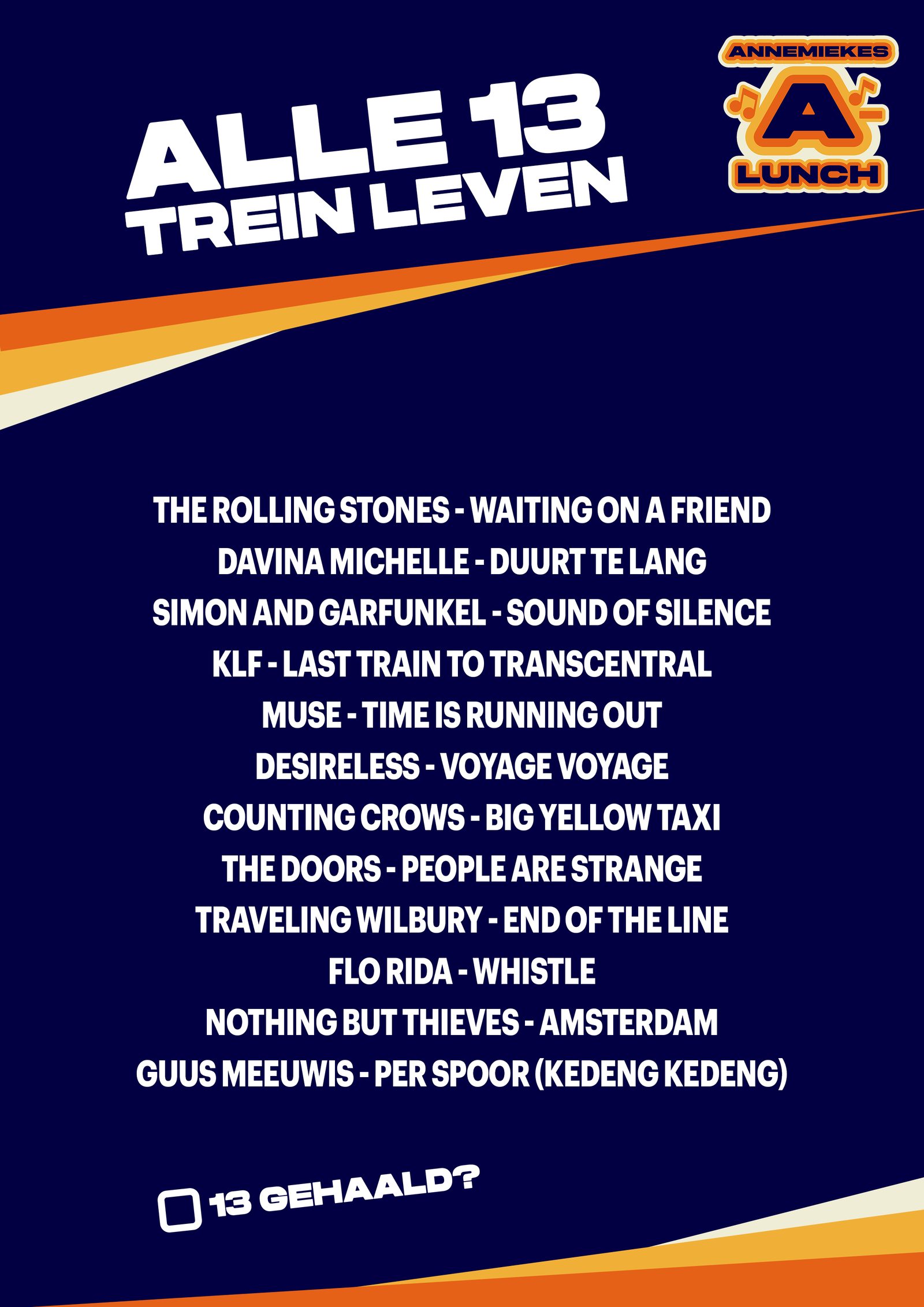 Duurt te Lang, Sound of Silence, Voyage Voyage… Dit was Alle 13: Trein leven