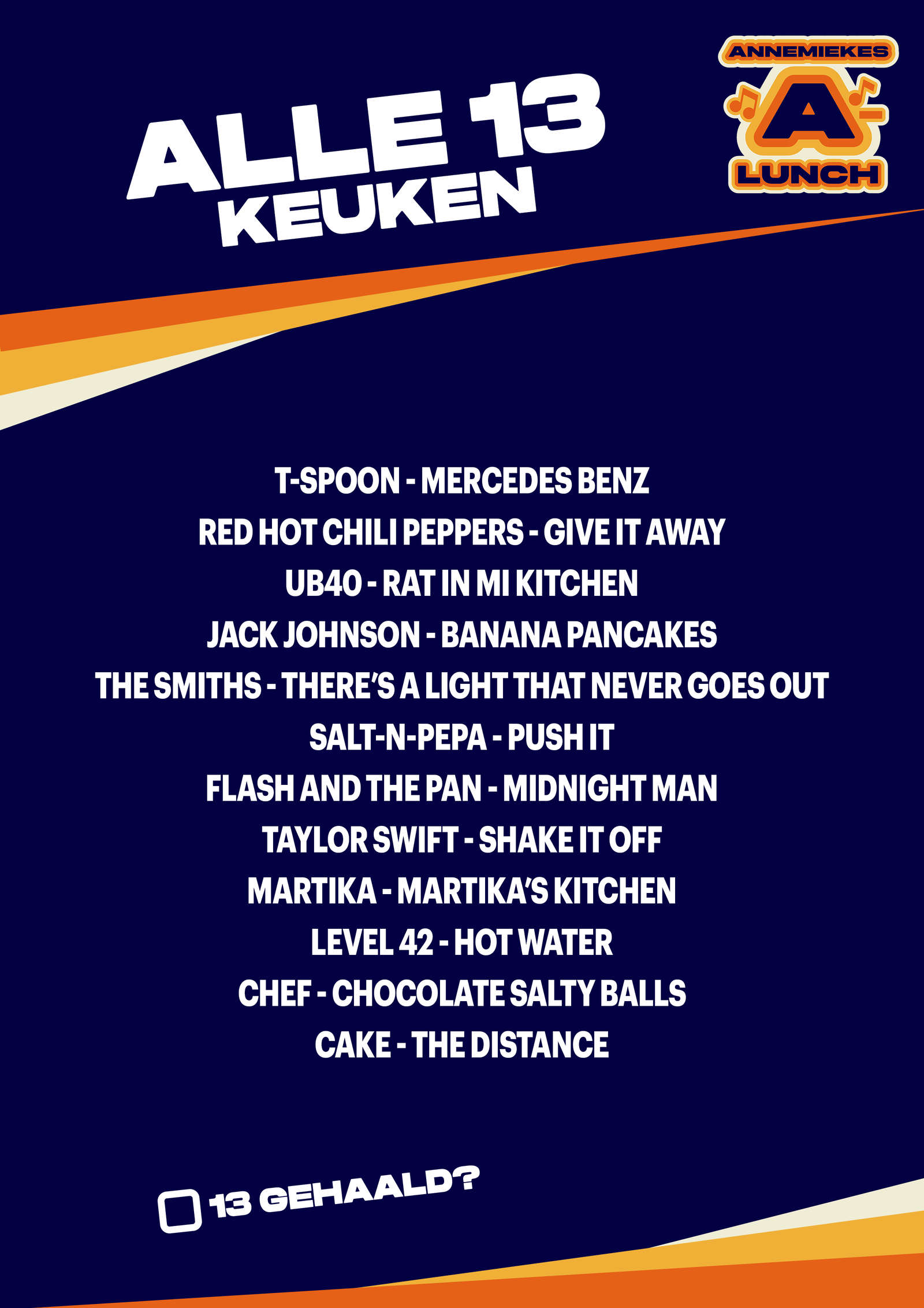 Vandaag appte luisteraar Danielle tijdens de A-Lunch: “Kom net bij de keukenboer vandaan. Wat dachten jullie van Alle 13: Keuken.” Zo kan het dus gaan! Dit was Alle 13: Keuken.