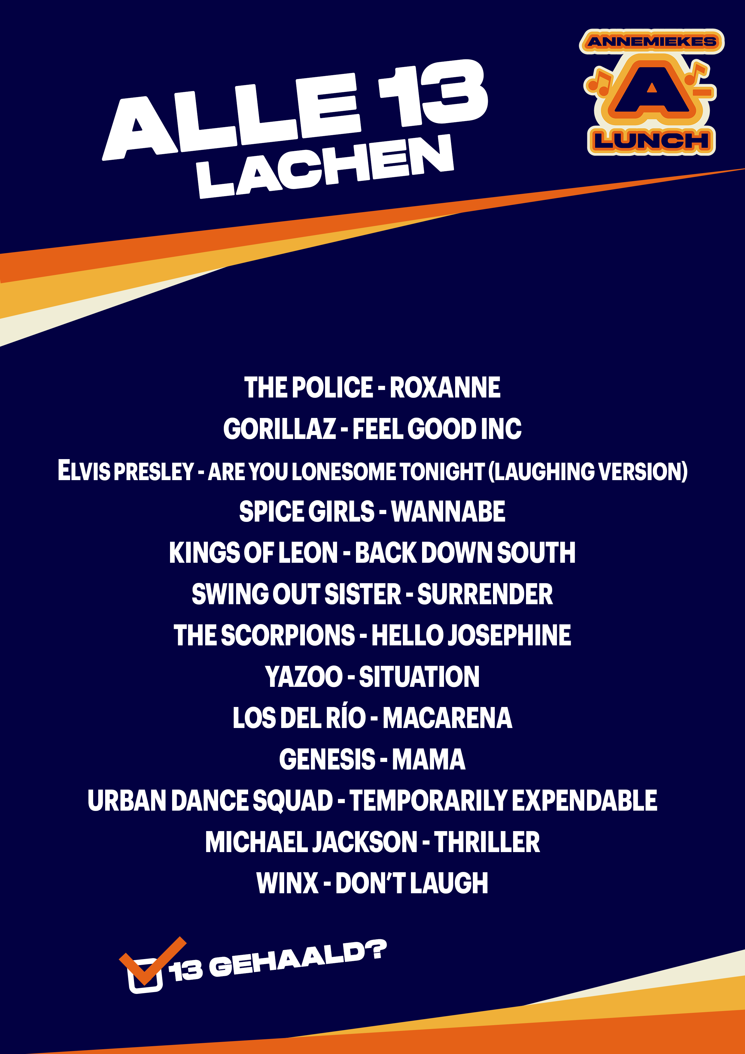 Staat jouw plaat er niet tussen? Probeer het volgende week nog een keer tijdens een nieuwe Alle 13! Heb je een idee voor een leuk thema? Ook deze kun je insturen via de NPO Radio 2 app.