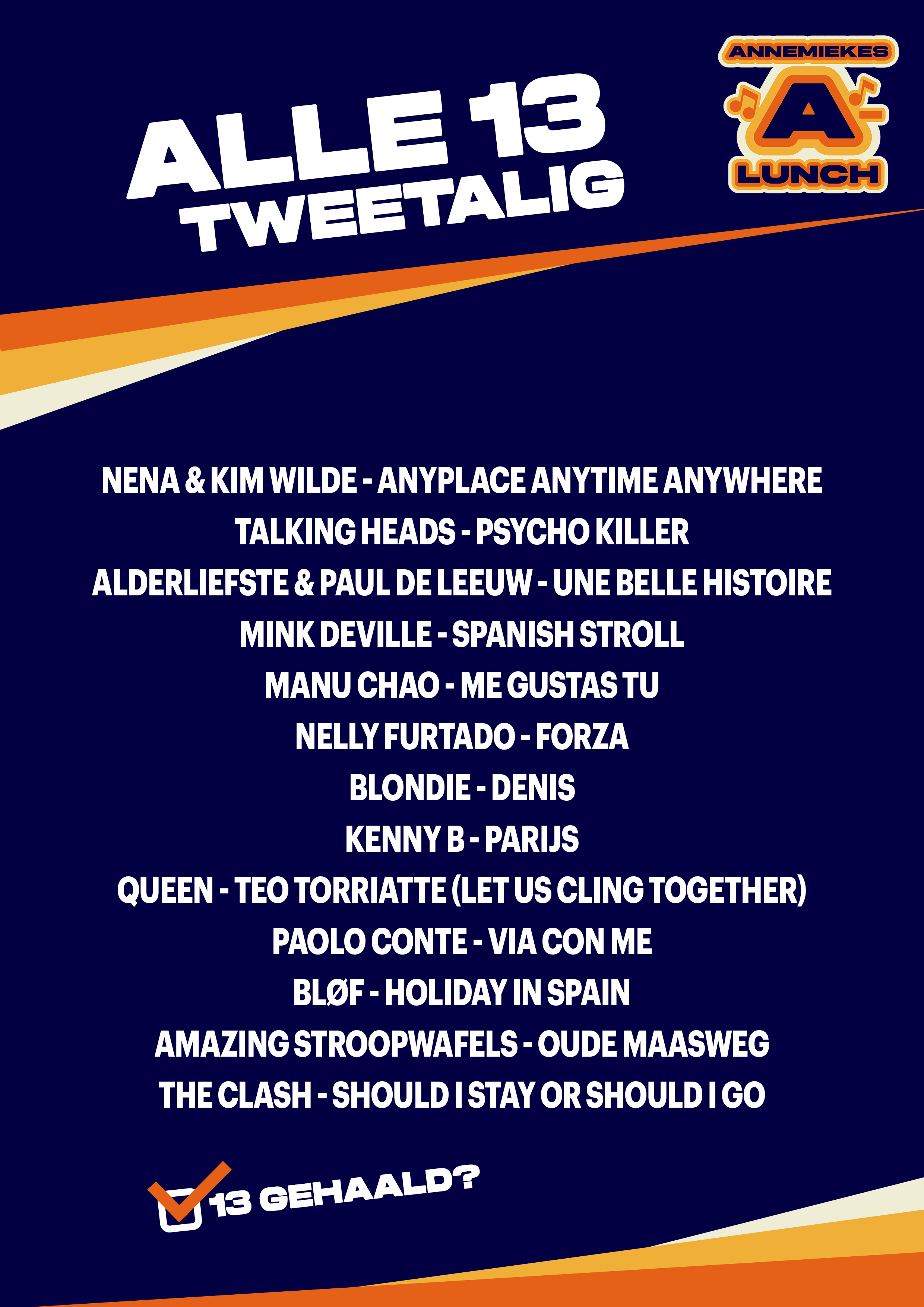 Luisteraar Astrid stuurde een appje naar NPO Radio 2 met een heerlijk Alle 13 voorstel, namelijk: Tweetalig!