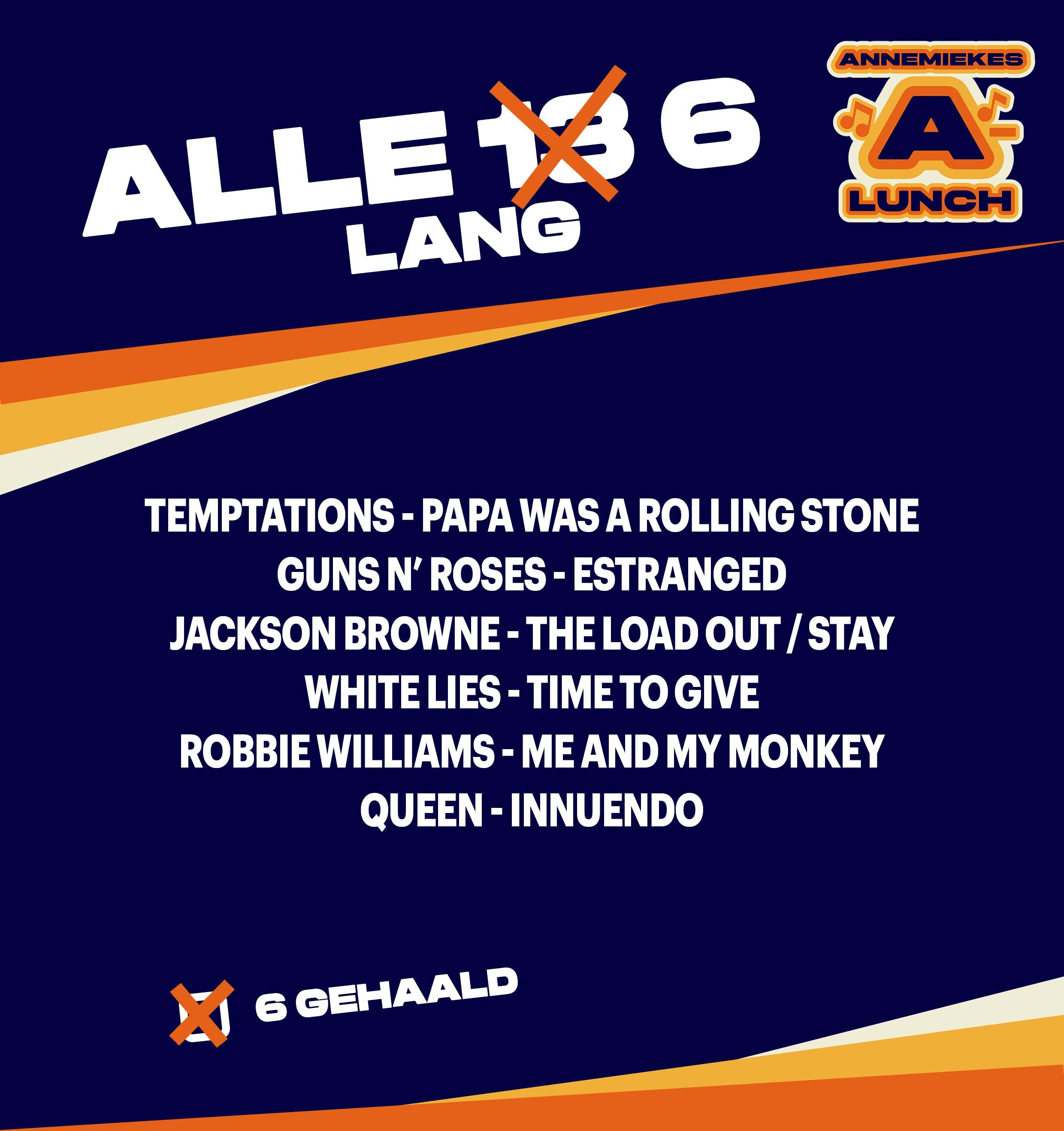 Staat jouw plaat er niet tussen? Probeer het volgende week nog een keer tijdens een nieuwe Alle 13! Heb je een idee voor een leuk thema? Ook deze kun je insturen via de NPO Radio 2 app.