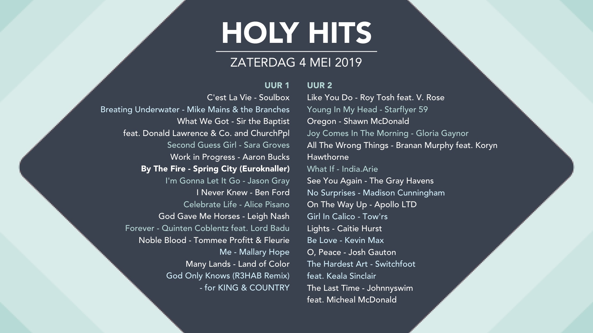 Playlist Holy Hits 4 mei 2019