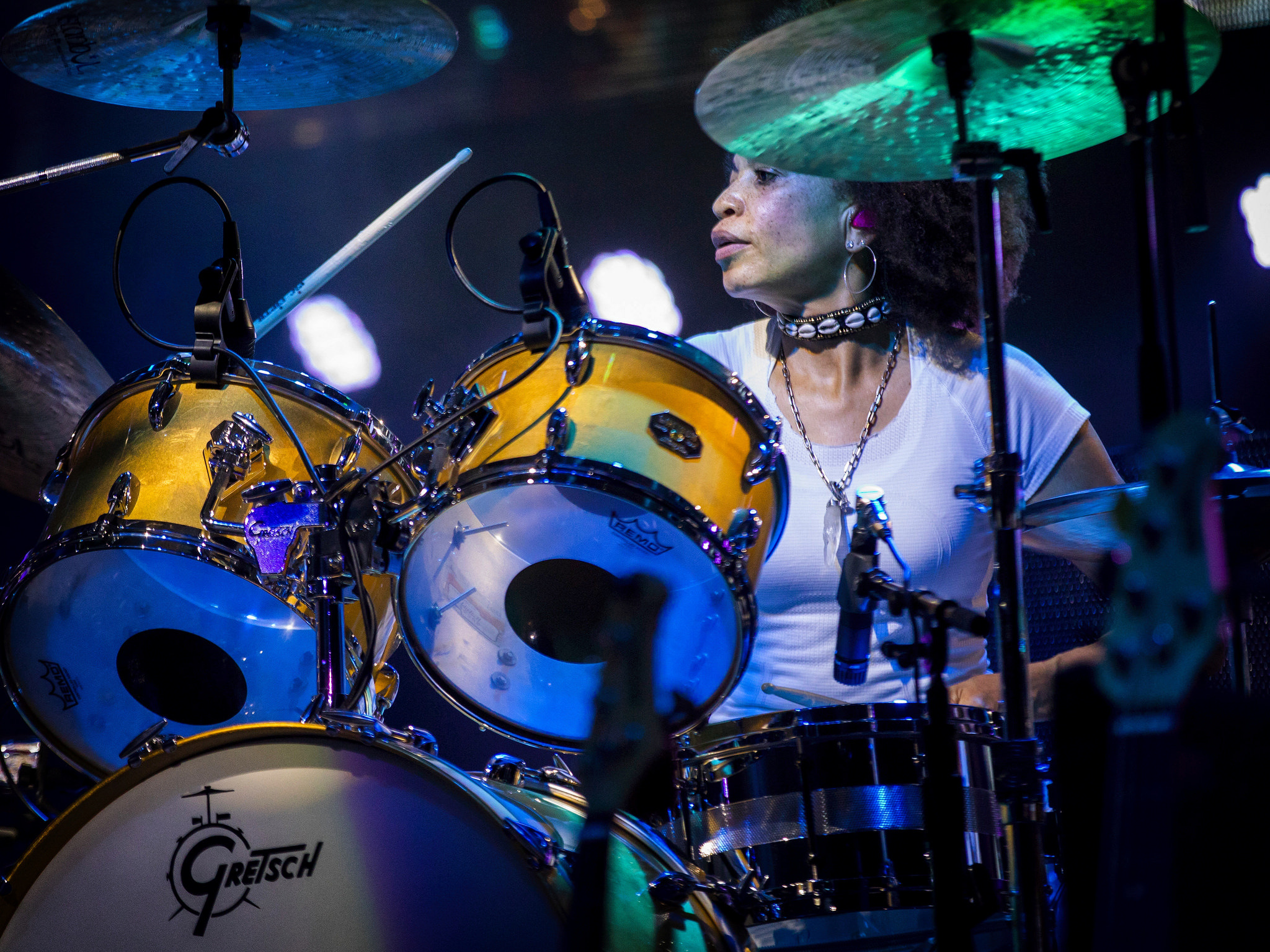 Weinig spraakzaam type die Carlos maar op de weinige momenten dat hij sprak, vroeg hij iedereen om te gaan staan. En dat deden we braaf. Even over die band, ze waren te gek, maar extra aandacht voor de drumster. Cindy Blackman. Was eerder de drummer van Lenny Kravitz en nu dus Santana. En drummen voor Carlos Santana is topsport. Zoveel breaks, zoveel onverwachte percussie… en na anderhalf uur topsport kwam er zelfs nog een drumsolo van een minuut of tien. (die had wel iets korter gemogen overigens)