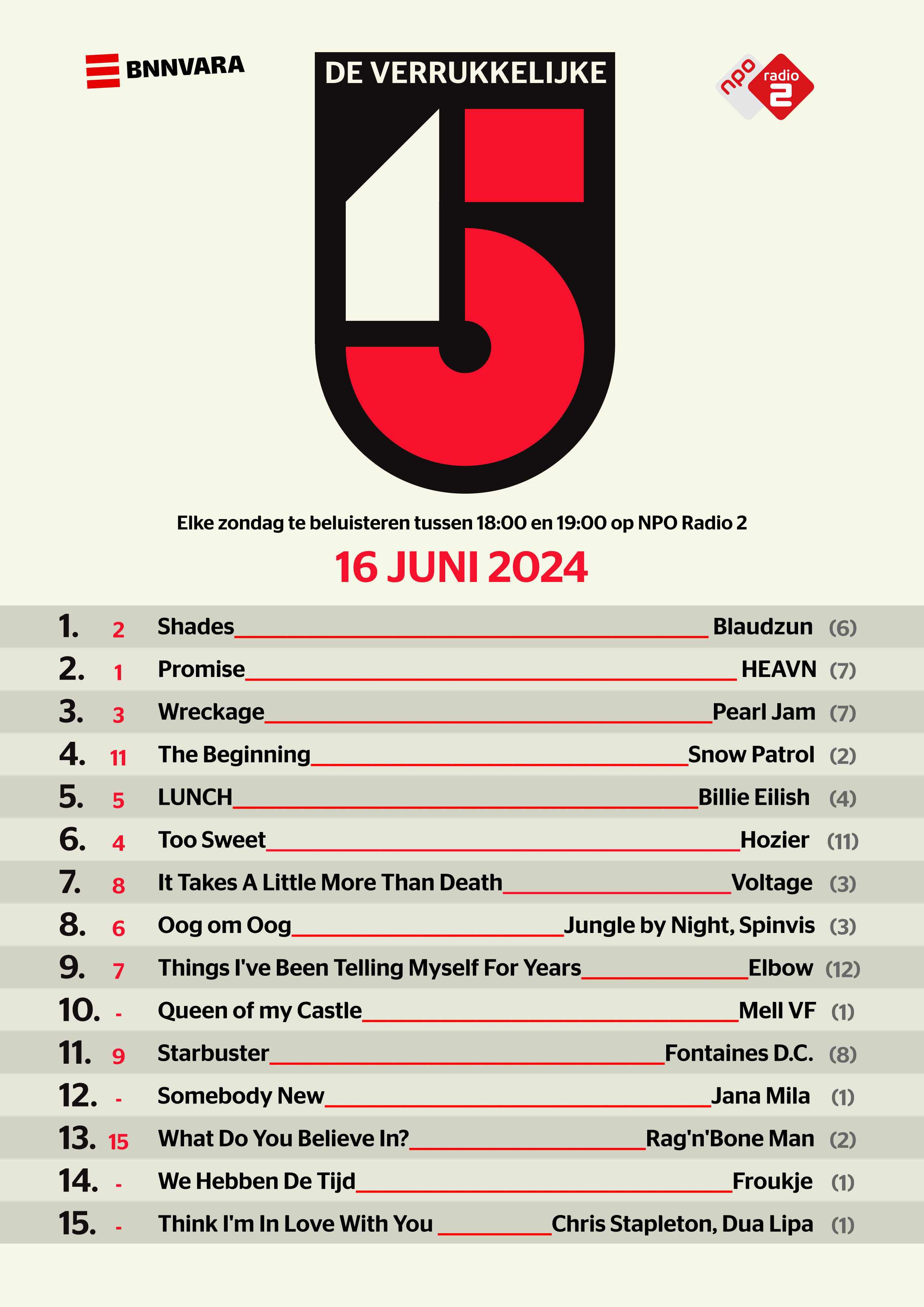 - Bekijk hier de Verrukkelijke 15 van zondag 16 juni