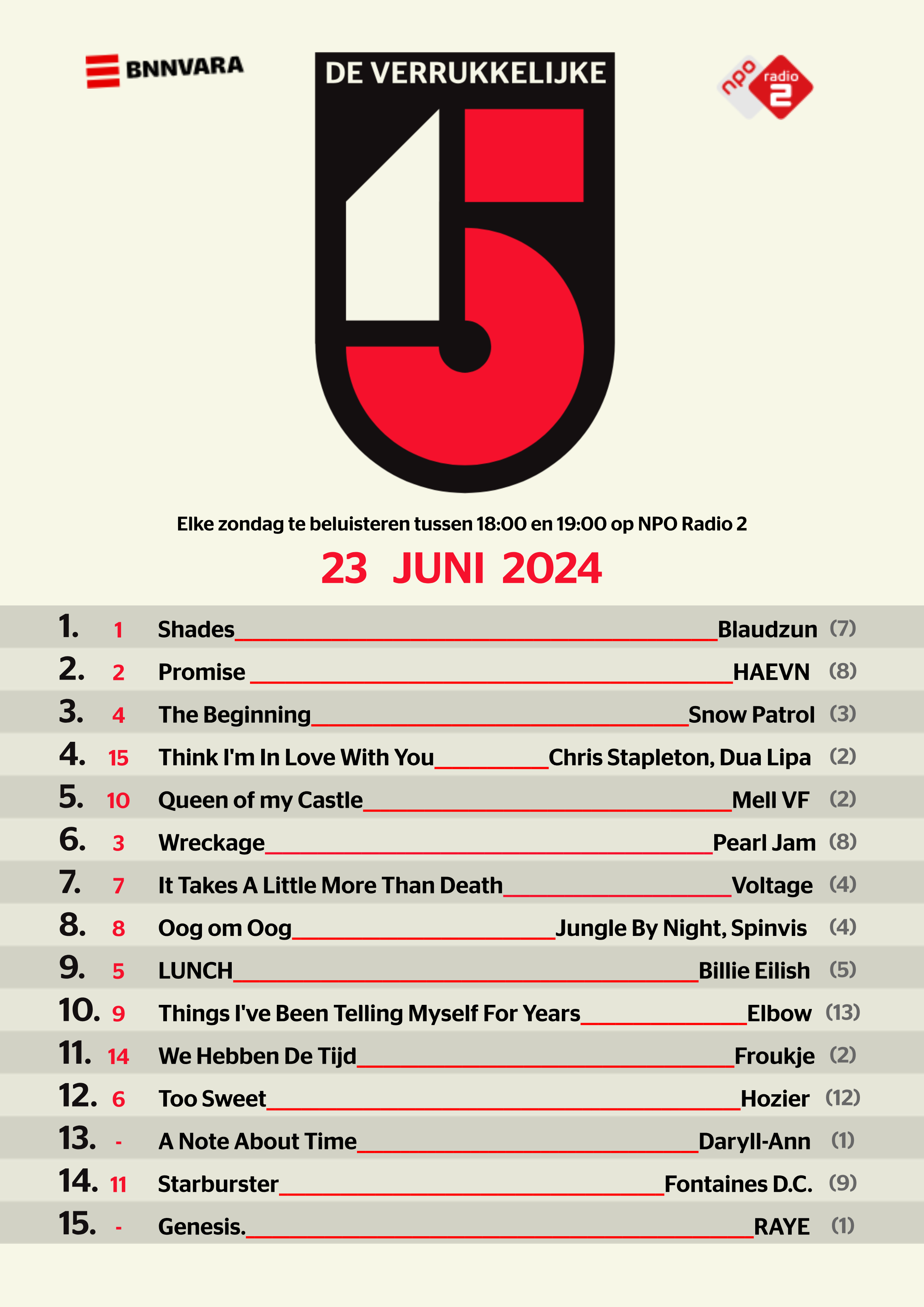 - Bekijk hier de Verrukkelijke 15 van zondag 23 juni