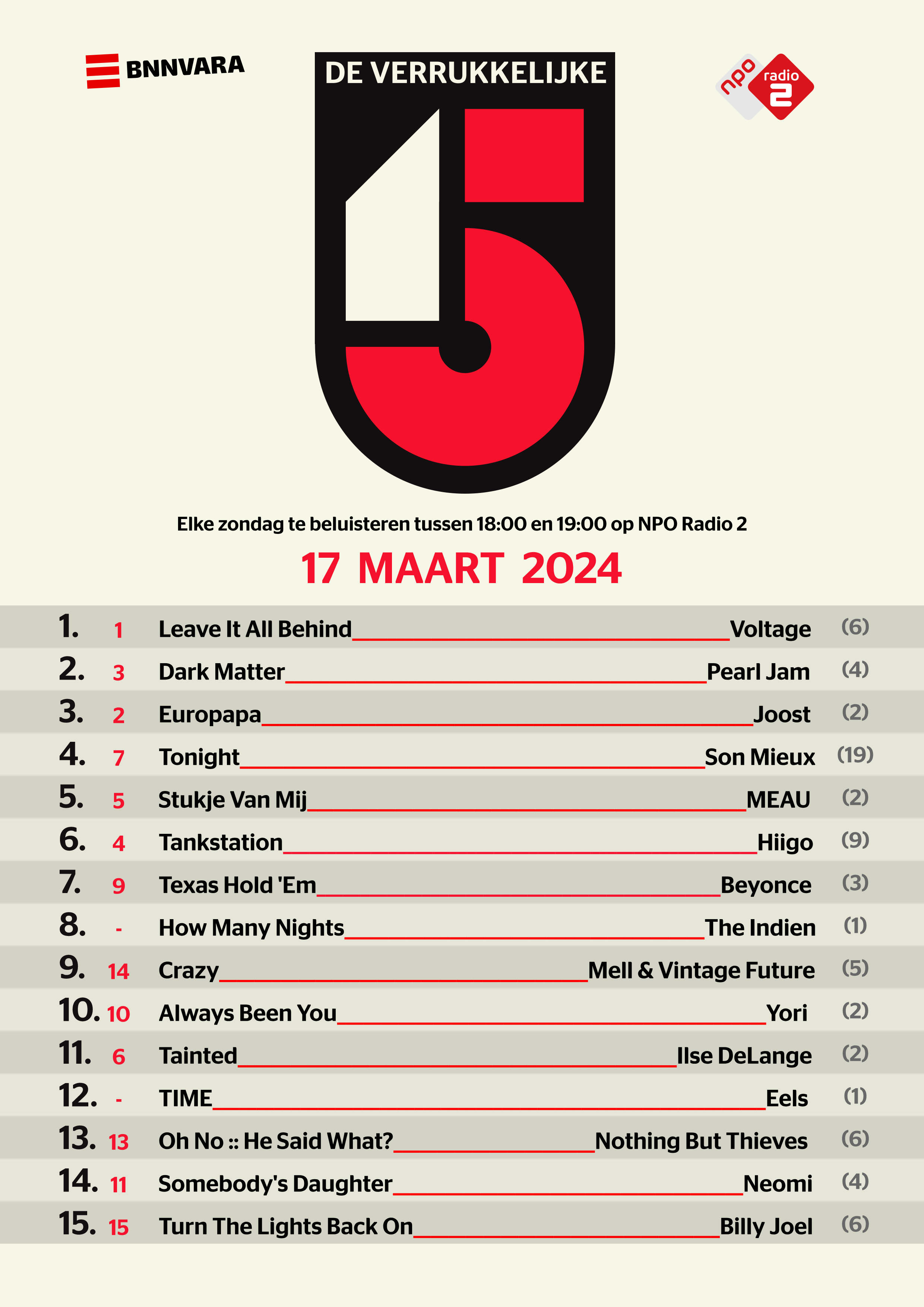 - Bekijk hier de Verrukkelijke 15 van zondag 17 maart