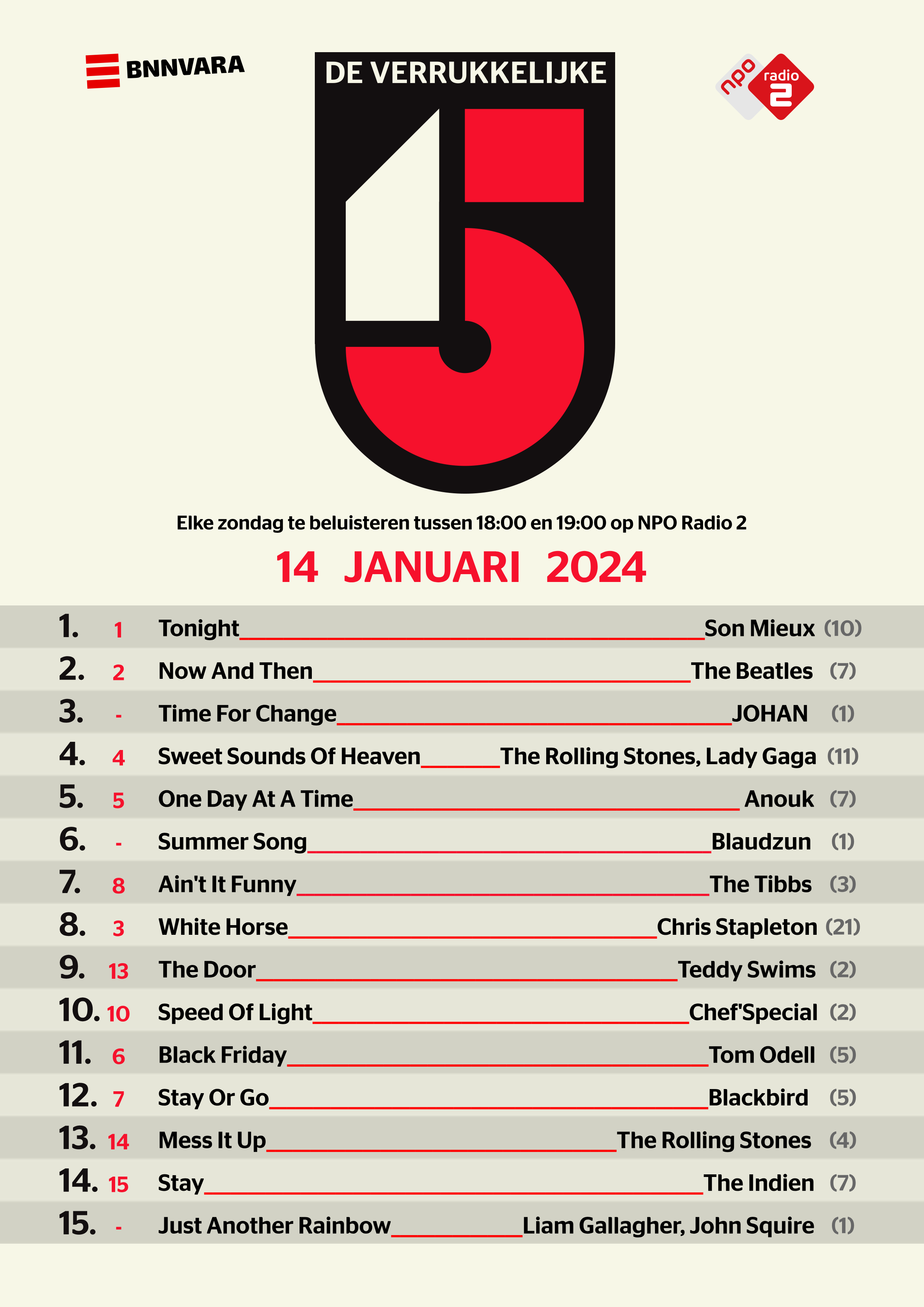 - Bekijk hier de Verrukkelijke 15 van zondag 14 januari