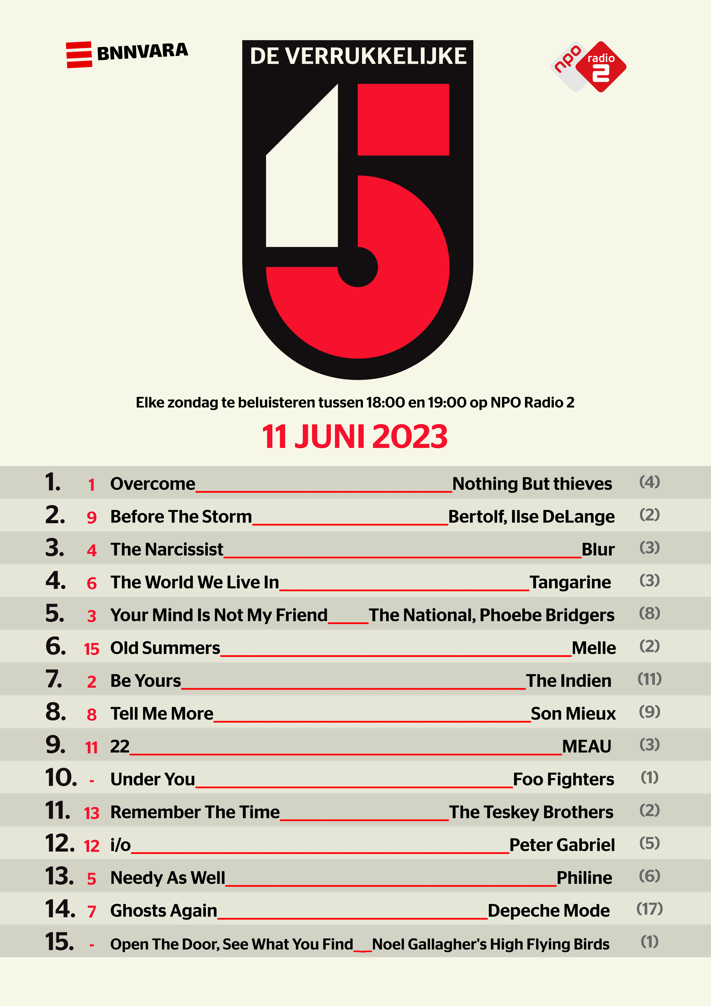 De Verrukkelijke 15Bekijk hier de Verrukkelijke 15 van 11 juni 2023foto: NPO Radio 2foto: Ben HoudijkNieuwschevron rightBekijk hier de Verrukkelijke 15 van 11 juni 2023foto: Verrukkelijke 15Ster advertentieSter advertentieGerelateerd nieuwsDe Verrukkelijke 15De Verrukkelijke 15 van zondag 30 novemberDe Verrukkelijke 15De Verrukkelijke 15 van zondag 16 novemberDe Verrukkelijke 15De Verrukkelijke 15 van zondag 29 juniDe Verrukkelijke 15De Verrukkelijke 15 van zondag 9 novemberv