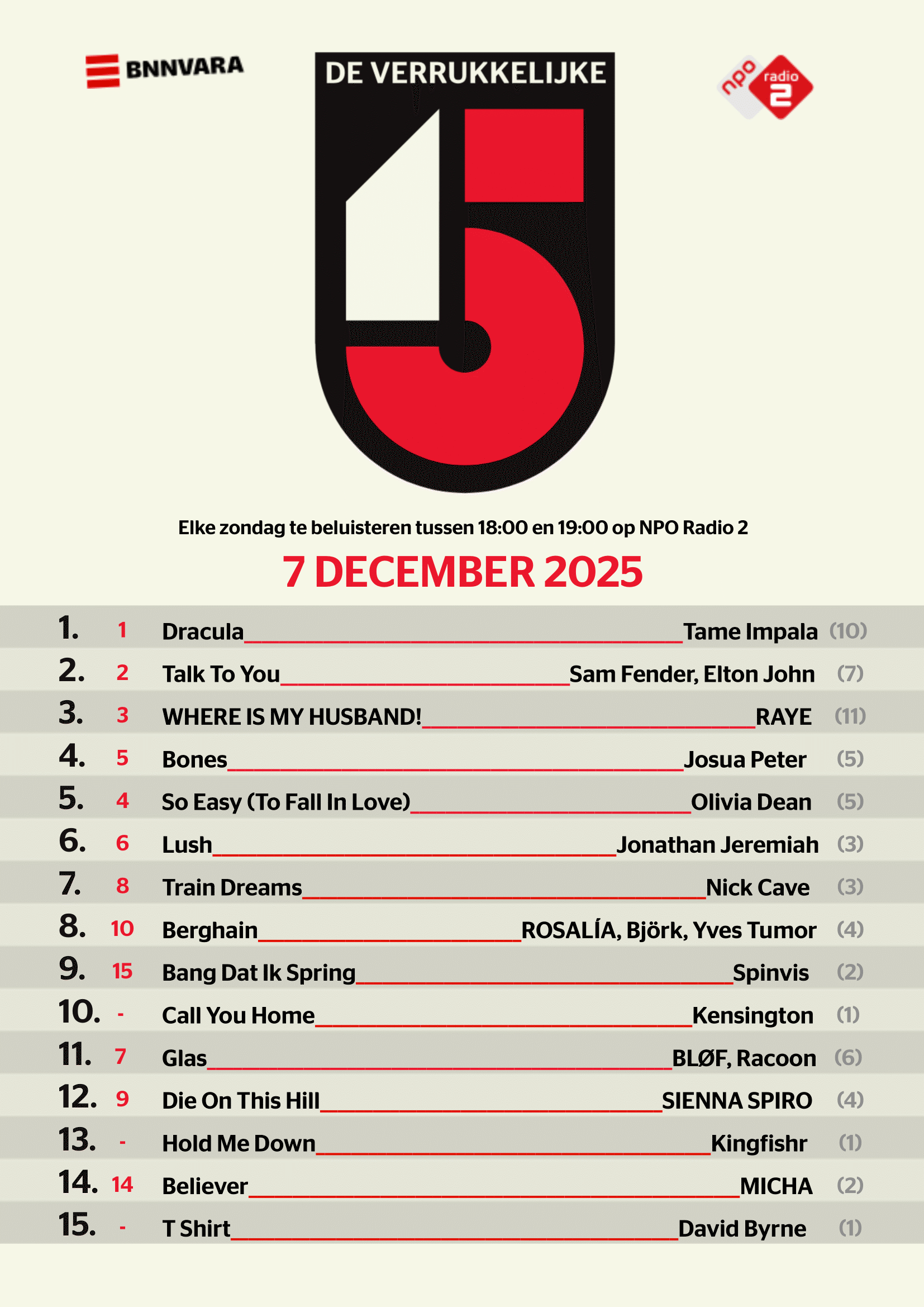 De Verrukkelijke 15De Verrukkelijke 15 van zondag 7 decemberfoto: Bullet-Rayfoto: Bullet-RayNieuwschevron rightDe Verrukkelijke 15 van zondag 7 decemberfoto: De Verrukkelijke 15Advertentie via ster.nlDe Verrukkelijke 15BNNVARAAdvertentie via ster.nlGerelateerd nieuwsDe Verrukkelijke 15De Verrukkelijke 15 van zondag 30 novemberDe Verrukkelijke 15De Verrukkelijke 15 van zondag 16 novemberDe Verrukkelijke 15De Verrukkelijke 15 van zondag 6 juliDe Verrukkelijke 15De Verrukkelijke 15 van zondag 20 juli 2025