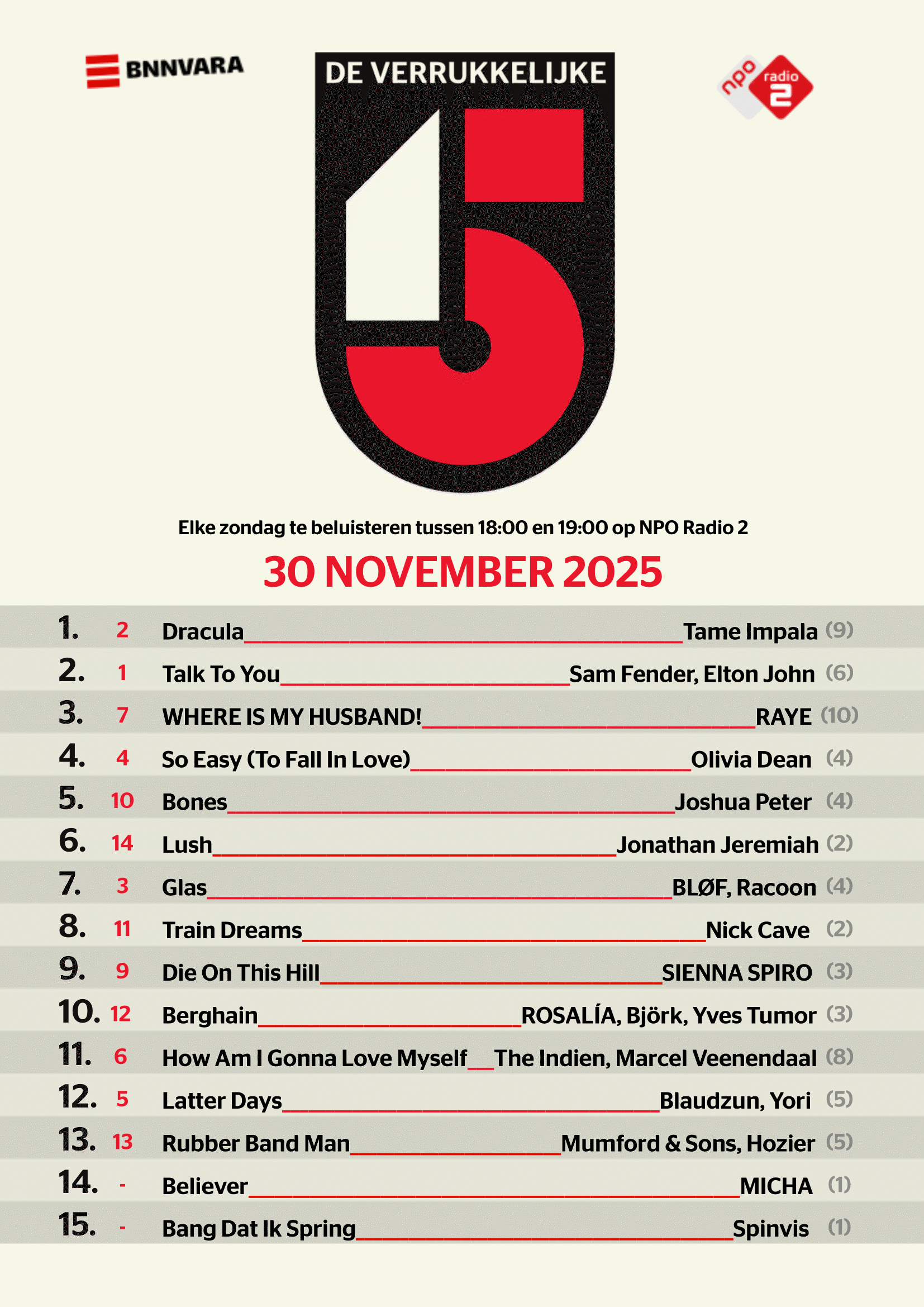 De Verrukkelijke 15De Verrukkelijke 15 van zondag 30 novemberfoto: Bullet-Rayfoto: Bullet-RayNieuwschevron rightDe Verrukkelijke 15 van zondag 30 novemberfoto: De Verrukkelijke 15Advertentie via ster.nlDe Verrukkelijke 15BNNVARAAdvertentie via ster.nlGerelateerd nieuwsDe Verrukkelijke 15De Verrukkelijke 15 van zondag 7 decemberDe Verrukkelijke 15Het 2025 jaaroverzicht van De Verrukkelijke 15De Verrukkelijke 15De Verrukkelijke 15 van zondag 2 november 2025De Verrukkelijke 15De Verrukkelijke 15 van zondag 31 augustus 2025