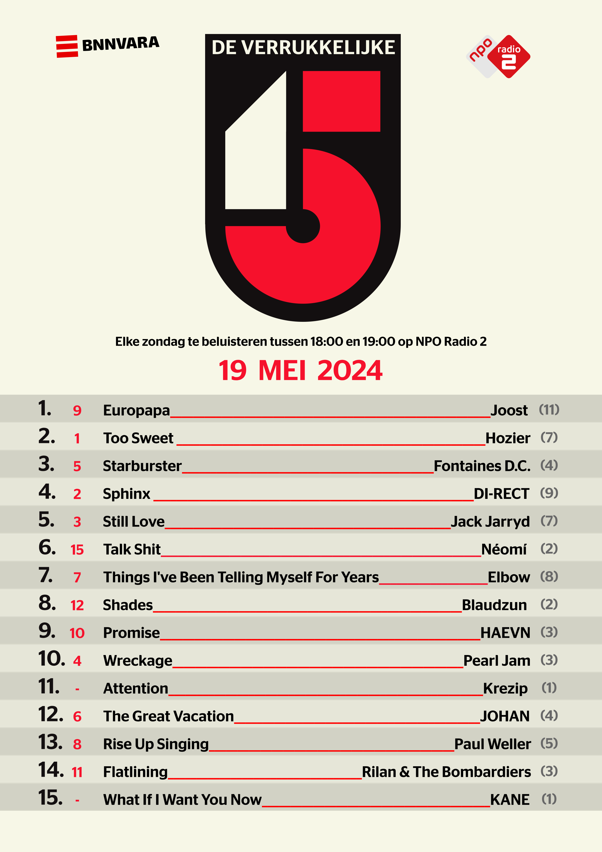 - Bekijk hier de Verrukkelijke 15 van zondag 19 mei