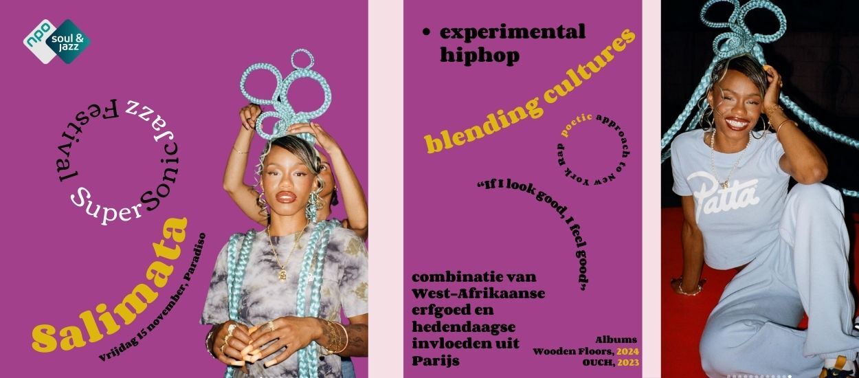 Uit Brooklyn, New York en met wortels die reiken tot in West-Afrika, is hiphoprapper SALIMATA er eentje om in de gaten te houden. Met een sterke toewijding aan het behoud van haar erfgoed en de empowerment van vrouwen, is haar muziek doordrenkt van kracht en authenticiteit. Haar uitstraling is uitgesproken en kleurrijk, en haar teksten zijn scherp maar ook kwetsbaar. Naast muziek tekent ze graag cartoons en maakt ze kleine kunstwerkjes die ze deelt met haar volgers – een artistieke vogel die haar vleugels in de scène aan het uitspreiden is.